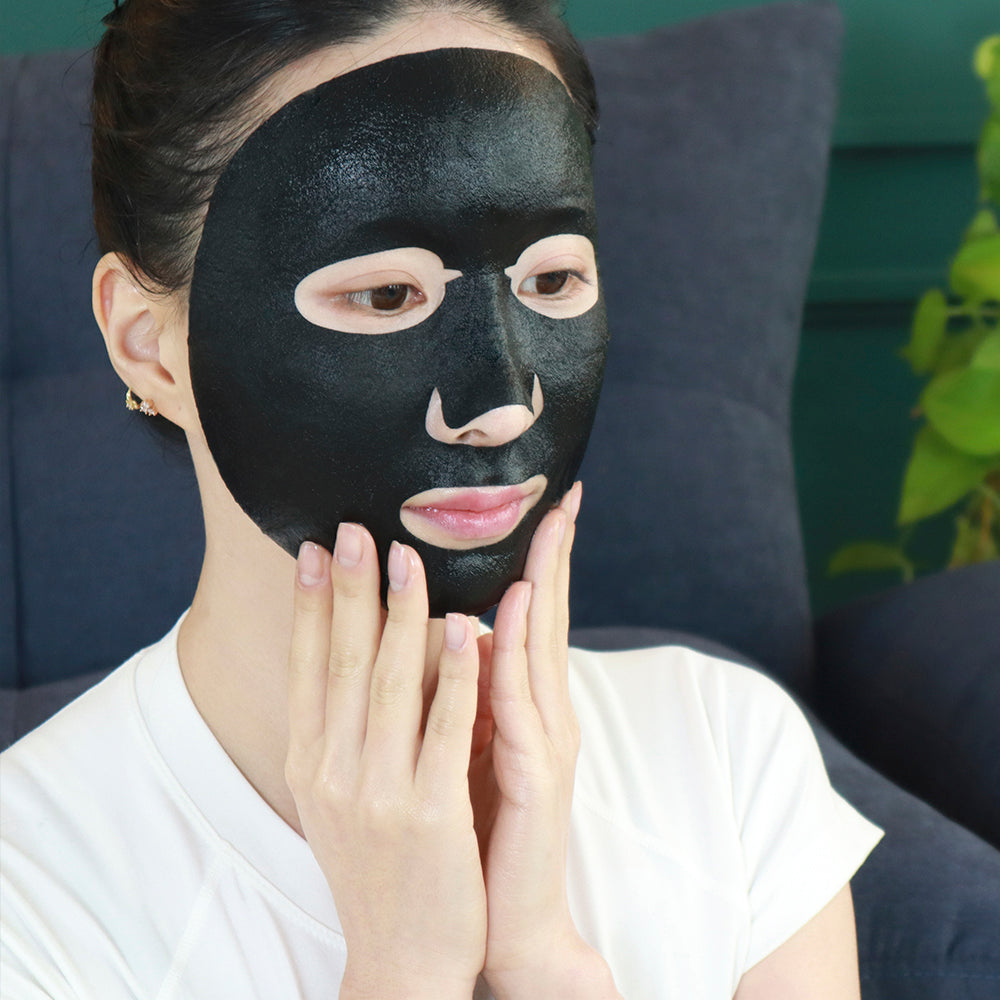 Mascarilla facial coreana en formato de velo o sheet mask, formulada con Binchotan, carbón vegetal elaborado artesanalmente en Japón, muy conocido por su gran eficacia para eliminar impurezas, y especialmente para limpiar la suciedad de los poros.